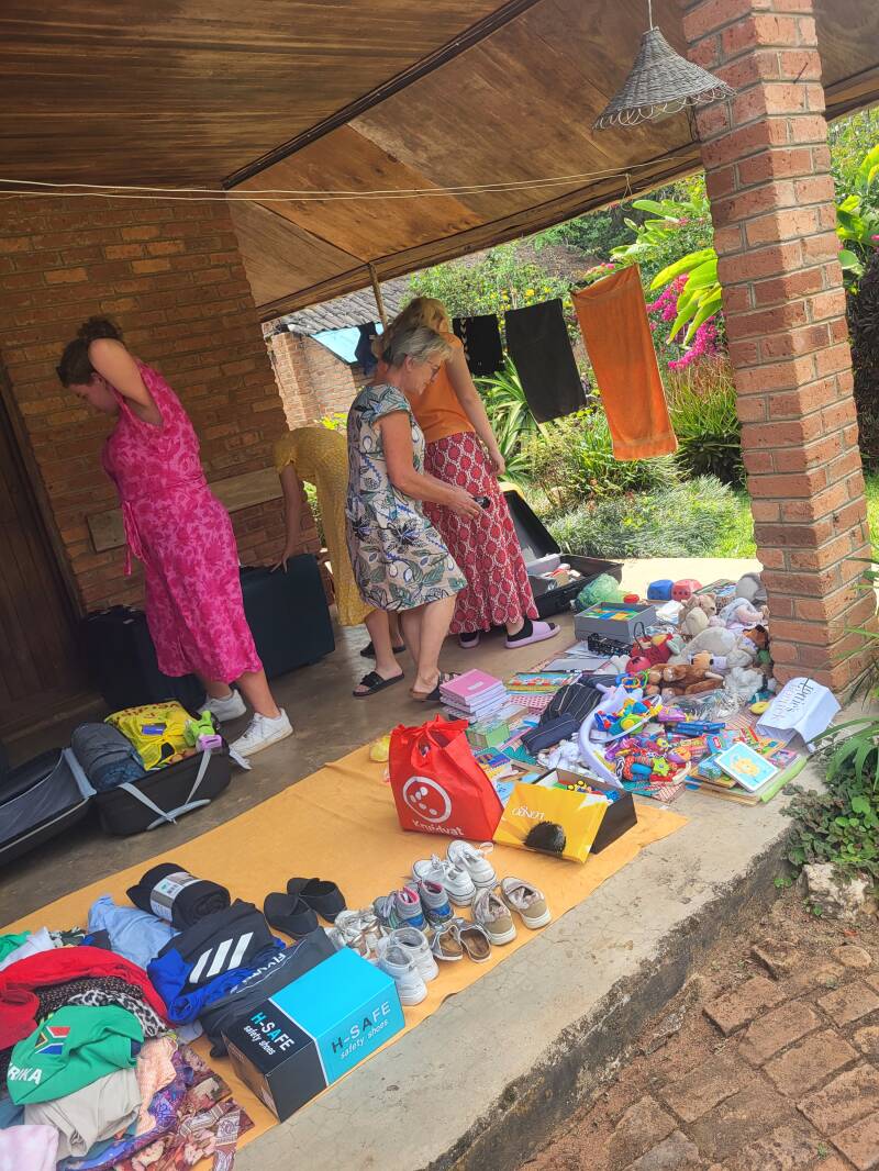 We begonnen de dag met een estafette. We waren gelijk weer helemaal wakker. Na een goed ontbijt zijn de jongens gaan wandelen en de meiden hebben alle koffers met gekregen spullen uitgepakt en uitgezocht.