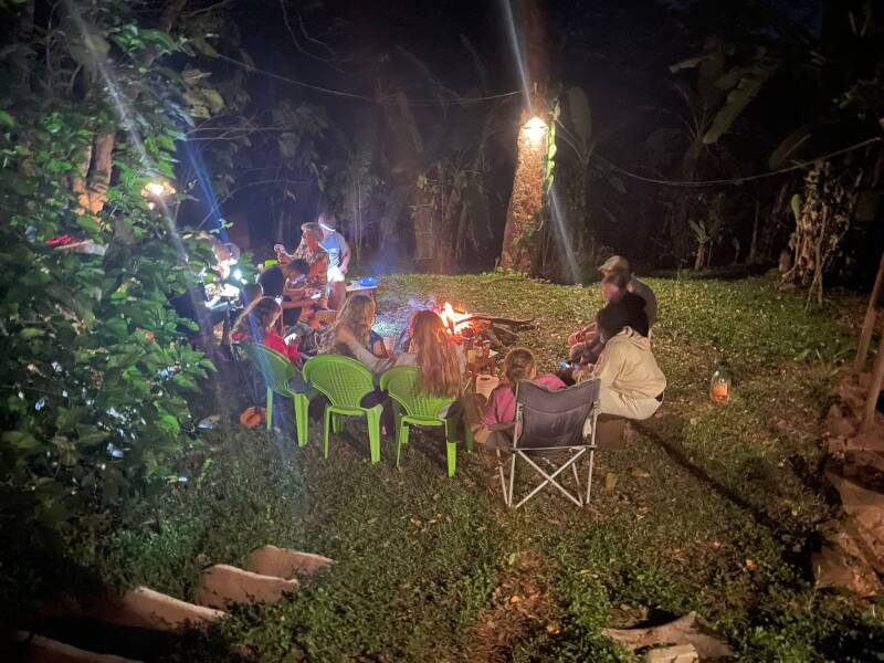 Ondertussen was Naël pizza aan het maken voor het avond eten en hebben we deze in de pizza oven in de tuin gebakken en die heerlijk op gegeten bij het kampvuur. 'S avonds hebben we nog met z'n alle een spelletjes gedaan, gekletst, gezongen en terug gekeken op de afgelopen fantastische week.